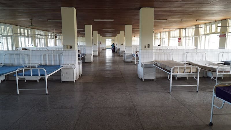 Windows open along both outer walls and the sounds of birds permeate the ward.