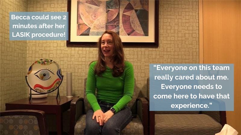 “I can see that! ” Becca was completely reliant on her glasses to function – she couldn’t drive, make her coffee, or see the clock. And now her new normal after LASIK is AMAZING! Not only is her eyesight the best it’s ever been, but she was confident in Dr. Chu and his team to wal...
